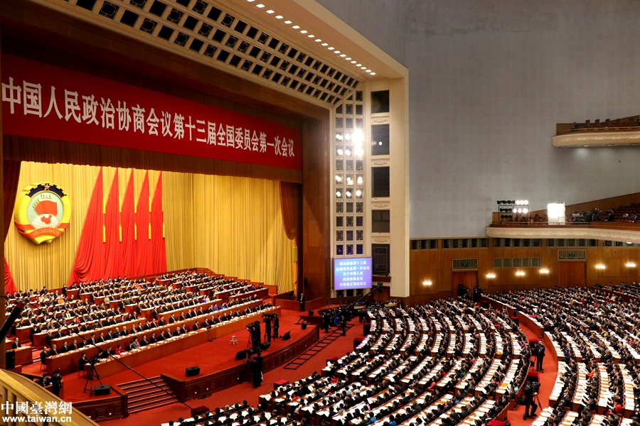 3月15日,全国政协十三届一次会议在北京人民大会堂举行闭幕会。(中国台湾网 卢佳静 摄)