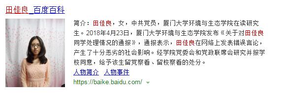 出了这样的人,厦门大学也必须做出相应处分。但是我觉得矛头不需要指到厦门大学身上,因为吸收这种人入党几乎是全国高校都在做错的事。田佳良被扒出来的“光辉事迹”中,很多都是在辽宁老家干出来的,三观也是在东北形成的。不是地域黑,但是在东北读过书的都知道当地高校官僚气息多么严重,我对田同学论文严重抄袭却依然被保送到厦大的事并不感到奇怪。厦大这次算是躺枪,政审不是厦大做的,也不知道会招进这样的货色。但是厦大理亏在只是将田佳良留党察看,处罚太轻,高校学生党员都知道这个决定意味着什么,只要在接下来的半年到两年的时间里,田佳良乖乖闭嘴好好使用微博,她就能继续做科研被保送,最终取消对她的党内处分。