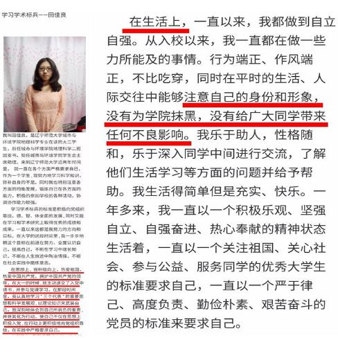 他们的所有行为都在向真正想要入党却因为学生工作经验不足而被拒之门外的同学传递一种负能信号:如果破坏规则可以得到更多,为什么要遵守规则?如果颠倒黑白可以一帆风顺,为什么还要选择端正?学生党员群体充斥着田佳良们这样的投机分子,完全就是利己主义者的做派,没有几个是真正愿意为了党奉献自己。