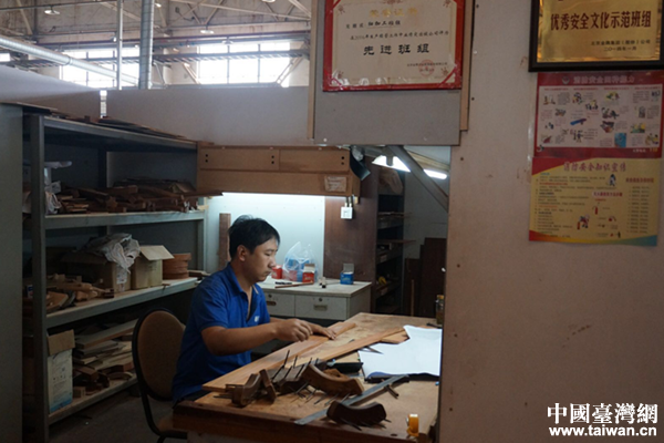 刘更生介绍“一木连做”的传统工艺。(中国台湾网 雍紫薇 摄)