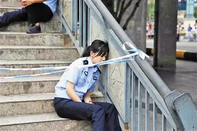 12日,记者在不少潼南人的朋友圈发现了同一张照片。照片中,在警戒线旁的方秋蕴一脸疲惫地坐在阶梯上,靠着栏杆休息。