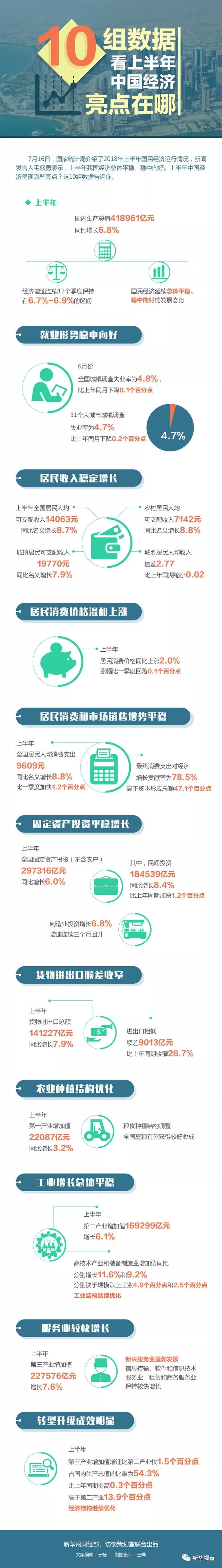16日发布的数据显示,中国经济上半年实现6.8%的增长,延续总体平稳、稳中向好的发展态势,经济迈向高质量发展起步良好。