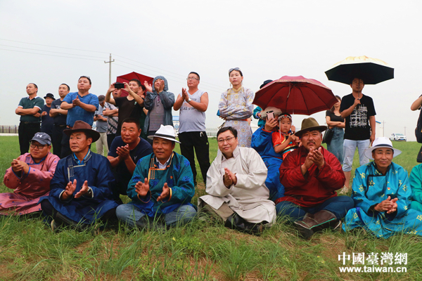 中国台湾网7月23日讯 (记者 李宁)尽管离家有40多里路,天气阴晴不定,孟克吉日嘎拉还是穿着蒙古盛装赶来。这天是乌兰牧骑要来演出的日子,孟克吉日嘎拉很早就约上了好朋友,同行的还有他的妻子、两个孩子。此刻,他们穿着鲜艳的蒙古长袍,坐在草地上欣赏着眼前苏尼特右旗乌兰牧骑演员们的演出。