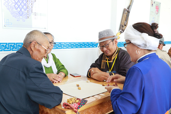 在锡林浩特市爱祺乐牧民养老园区,记者看到了这样的画面:身着鲜艳蒙古族服装的老人们,三五成群聚在一起,唱歌、跳舞、练书法、玩沙嘎、缝制民族服饰……生活丰富多彩!当天正值园区开那达慕,跟草原上的那达慕大会不同,这里是专门为园区的老人而开。“老人们岁数大了,不能出远门去看那达慕,我们就专门为他们办了一个,腿脚不好的老人也能看。”锡林浩特市巴彦查干街道党工委书记额尔德木图说。