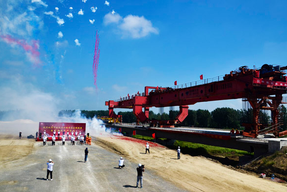 8月30日上午,江苏高邮当地一位87岁高龄的王老太太,远远地站在中国中铁北京工程局五公司连(云港)镇(江)高速铁路潼河特大桥工地上,观看从来未曾见过的大型设备架设重达714.8吨双线简支箱梁,期盼高铁早日建成通车,让这位老人远在上海工作的3个儿子,回家的路程更快些。当天,由该公司承建的连镇高铁宝应和高邮50公里施工管段在扬州境内主体工程率先完工。