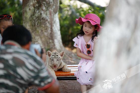 小朋友和白虎宝宝合影。首席记者 雷其霖 摄