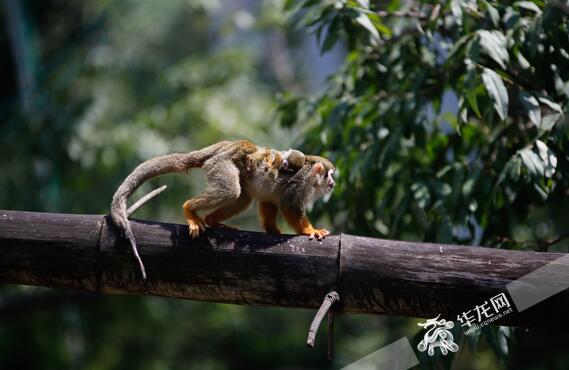 丛林间的野生猿猴上蹿下跳。首席记者 雷其霖 摄