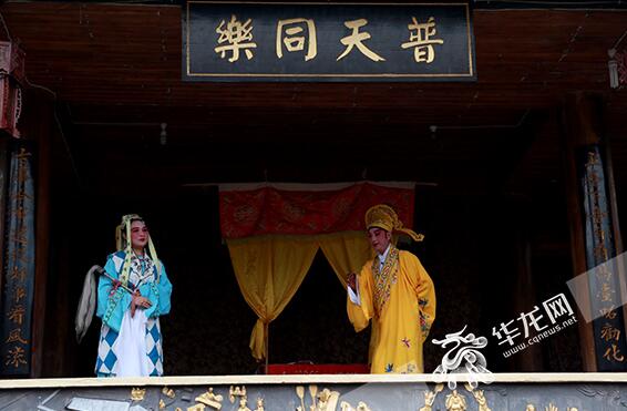 几名本土川剧老演员正在表演折子戏。记者 谢鹏 摄