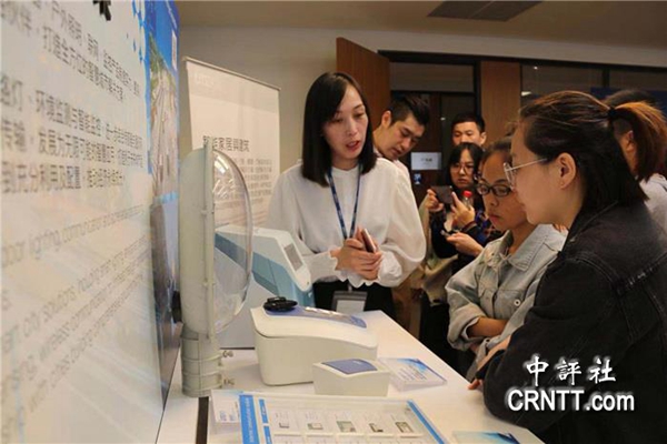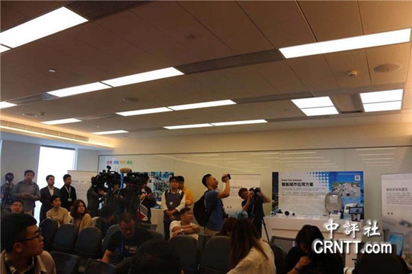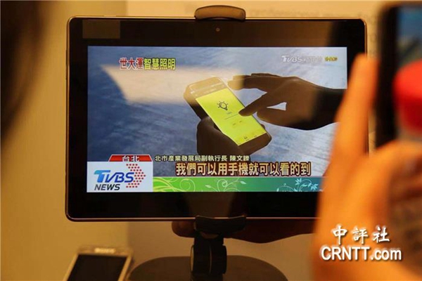 工作人员演示智能照明吸人眼球。(图片来源:中评社)