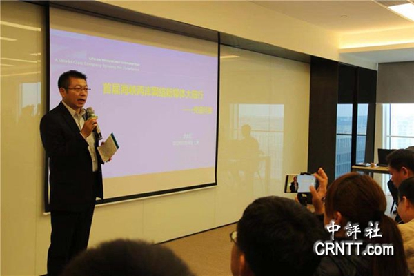 上海闵行区台办主任张海平介绍虹桥商务区的基本情况。(图片来源:中评社)