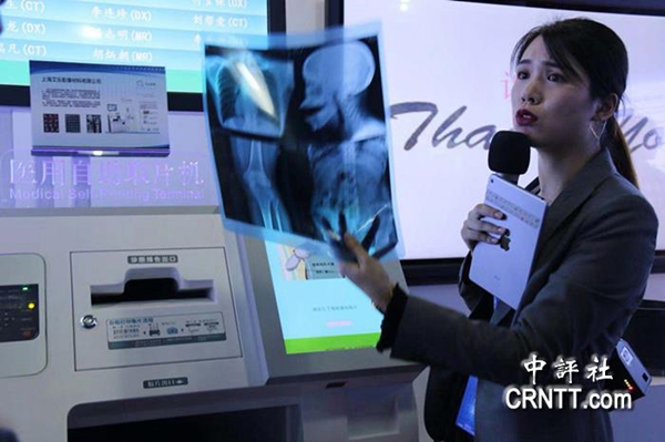 讲解员演示医用自助取片机。(图片来源:中评社)