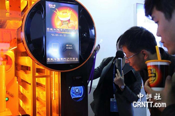 鲜橙汁自助贩售机。(图片来源:中评社)