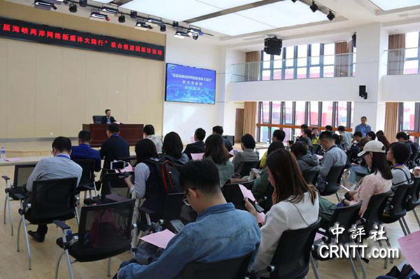 两岸媒体听取洋山港四期尚东分公司负责人简报。(图片来源:中评社)