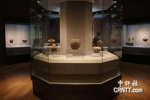 古陶艺术馆内陈列展示发掘的古陶。(图片来源:中评社)