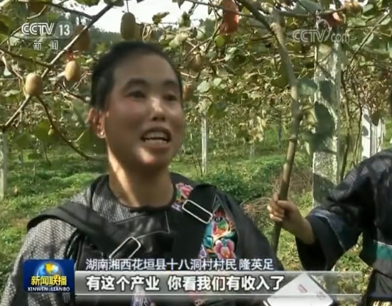 “(今年)猕猴桃结得好啊”,湖南湘西花垣县十八洞村村民施成富开心地说到,“果子大,一年比一年大!”