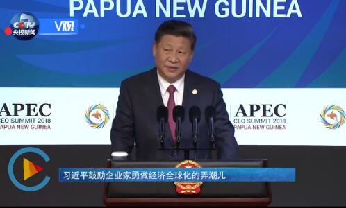 当地时间11月17日上午11时许,国家主席习近平出席在莫尔斯比港“太平洋探索者号” 邮轮上举行的APEC工商领导人峰会,并发表主旨演讲。