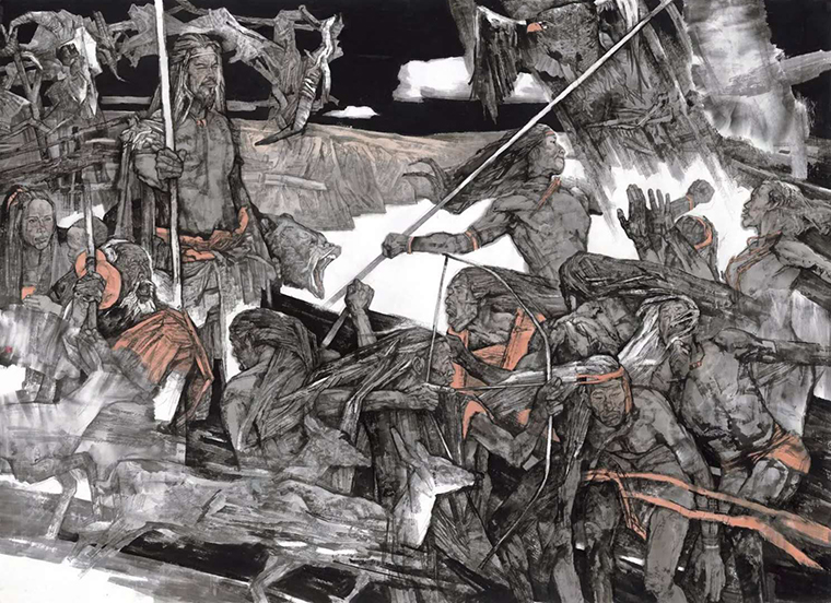 关于陈钰铭先生——这位擎旗的师傅,似乎无须多言,作为军队走出的、术业有专攻的个性水墨人物大家,不仅早就声名在外,关键是画好,有境界、有味道,且越来越好,越来越地道,不断自我聚焦,成就个人面貌,也为水墨人物画坛,矗立奇墨异彩的突兀一“象”。