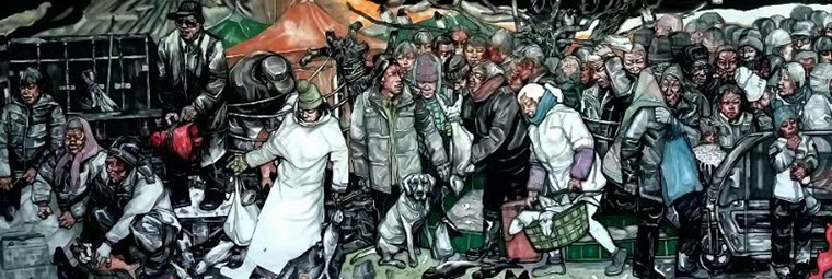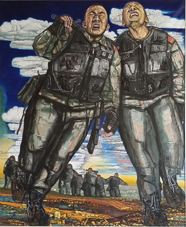 说“不一样”,是想说,艺术贵在不同,也难在不同。这种“不一样”,直观在形式语言,审美也由形式语言——或者说,通过形式语言——感受审美,进入思想,体现艺术价值。因为现代美学转向,语言成为“本体”,形式“恢复”本来面目。这些画作,虽出同门,但状貌、形态有所不同,内在思想也有所别,并均以现实主义理念创作,是主旋律,也是正能量。