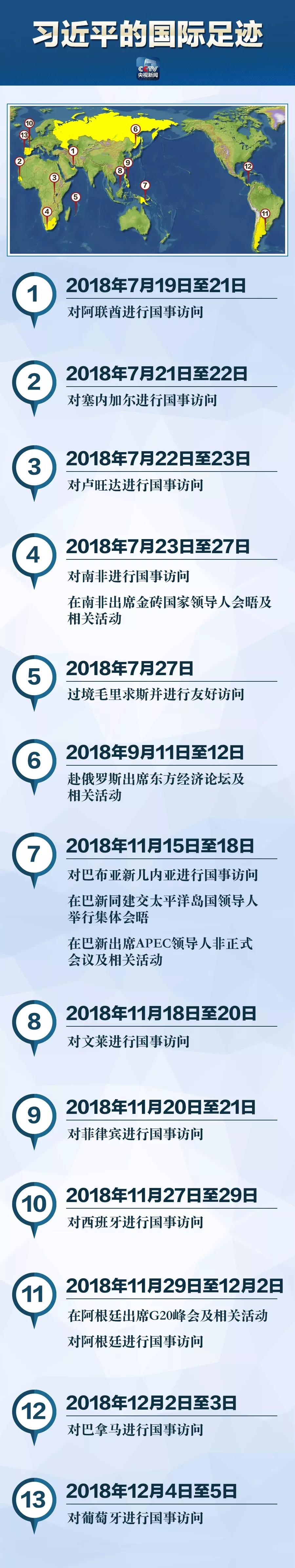 2018年接近尾声,在这一年中,习近平主席四次踏出国门,足迹遍布亚非欧拉美以及大洋洲13国,参加了金砖国家领导人会晤、APEC领导人非正式会议以及G20峰会等多场国际会议。有哪些亮点让人印象深刻?