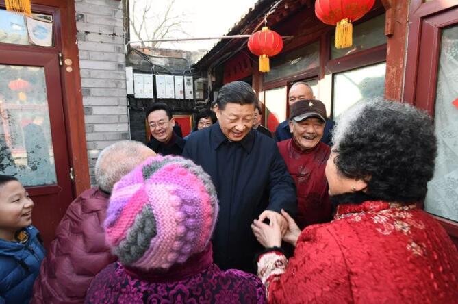 走出草厂四条胡同,附近的居民们挤满了街道,大家热烈鼓掌,纷纷向总书记问好。习近平给大家拜年,并向全国各族人民致以新春祝福,祝各族人民不断过上更好生活,祝国家日益繁荣昌盛,祝人民家和业兴、新春愉快!