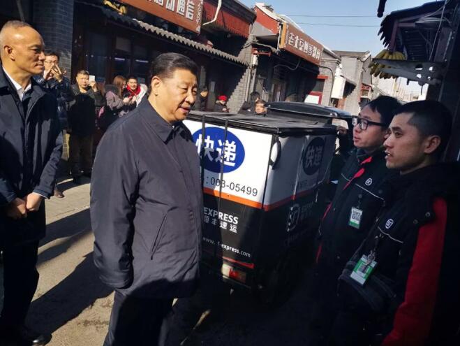 习近平来到北京前门东区,沿草厂四条胡同步行察看街巷风貌,了解老城区改造后居民住房条件改善情况。