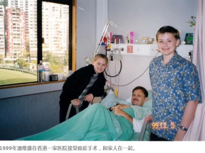 1999年潘维廉在香港一家医院接受癌症手术,和家人在一起。