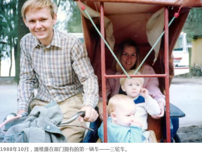 1988年10月,潘维廉在厦门拥有的第一辆车——三轮车。