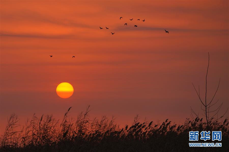 河北雄安新区安新县白洋淀日出。(来源:新华社)