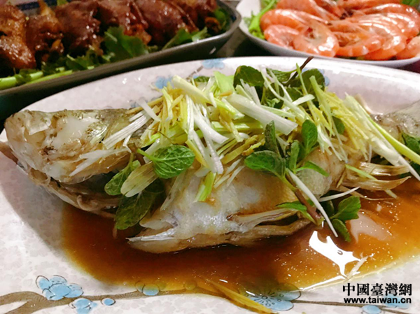 “妈妈牌”清蒸鲈鱼。(中国台湾网 刘洪羊 摄)