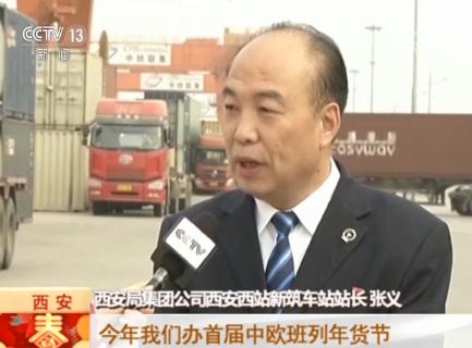 西安局集团公司西安西站新筑车站站长 张义:今年这个年货节也是因为品种丰富了,40多个国家的13大种类,大批量的年货进入国内。随着中欧班列量的剧增,原有的线路有22条,即将投入使用的达到了48条。