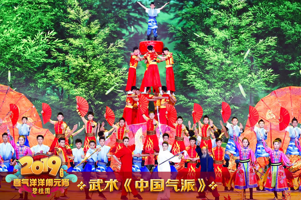 在《2019年元宵晚会》的舞台上,不只有非遗传承、民间民俗的年味,节目内容也同样注重在创新中传承优秀传统文化。武术节目《中国气派》将中国传统武术与扇舞结合,刚柔并济;戏曲节目《金猪送福》汇聚了全国十个地方剧种中的丑角,南腔北调共同为观众送上元宵节的美好祝福;器乐节目《金蛇狂舞闹元宵》汇聚了二胡、竹笛、古筝、琵琶四种中国传统乐器,形成了相互借力、彼此成全、融会贯通的艺术合力,用悠扬、欢快的乐声庆祝元宵佳节。这些蕴含中华传统文化精粹的节目,将中华文化独特的精神内涵呈现给全世界观众,彰显出中华传统文化的恒久魅力和中华民族包容、贵和的精神品质。