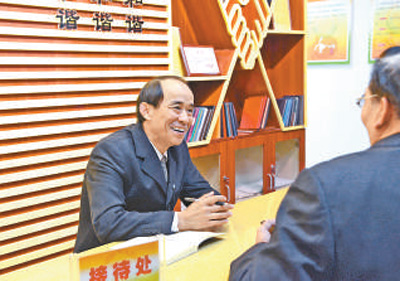 马善祥在观音桥街道“老马工作室”接待群众。