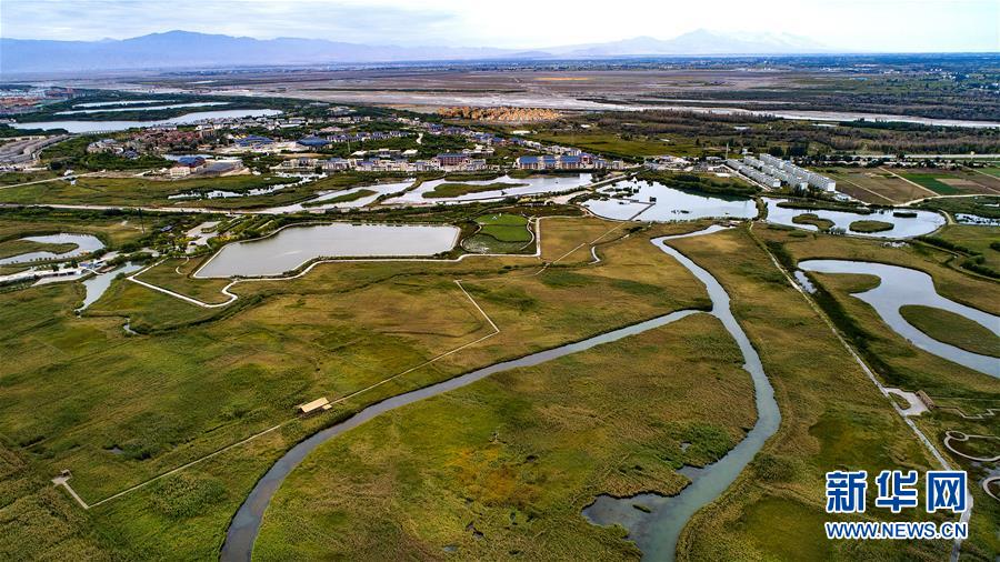 这是甘肃省张掖国家湿地公园一角(2018年9月5日无人机拍摄)。新华社记者 陶明 摄