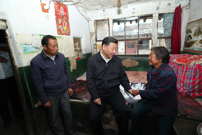 2017年6月21日下午,习近平到山西省忻州市岢岚县赵家洼村特困户王三女家中看望。