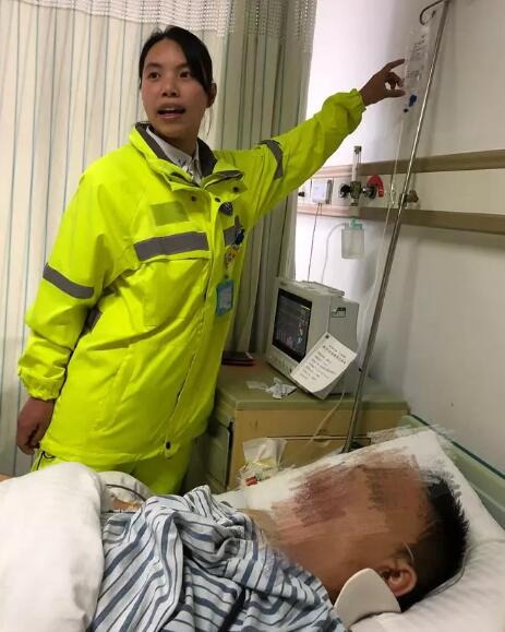 “别怕,我是急救护士,我来帮你,忍一下……”王露一边安慰,一边手脚麻利地开始为伤员包扎伤口、接监护仪、开通静脉通路。