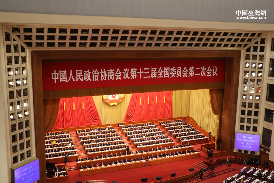 中国台湾网3月13日北京讯 (记者 雍紫薇)13日上午,全国政协十三届二次会议在人民大会堂举行闭幕会,闭幕会通过了政协第十三届全国委员会第二次会议政治决议。
