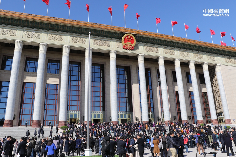 委员走出人民大会堂。(中国台湾网 雍紫薇 摄)