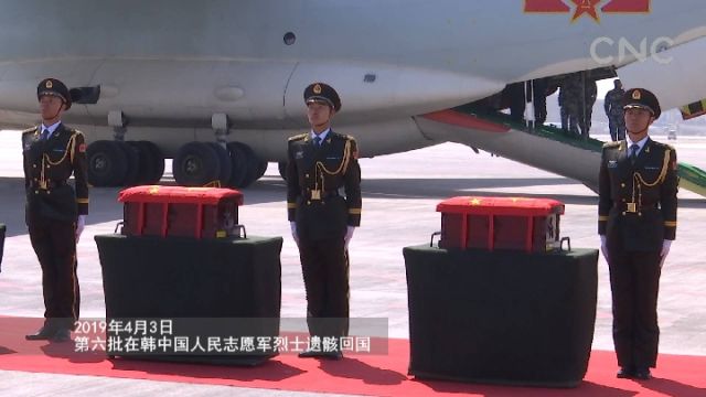 4月3日上午,第六批在韩中国人民志愿军烈士遗骸由我空军专机护送从韩国接回辽宁沈阳。