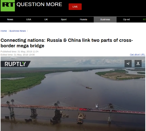另据俄罗斯西伯利亚时报网站6月1日报道,一座具有历史意义的俄中公路桥将于2020年4月正式开通。
