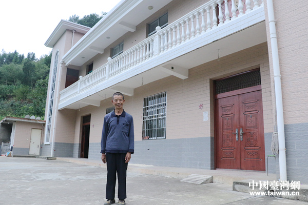 银厂沟村目前唯一的“贫困户”李家顺,身后是他与侄子共同居住的二层楼房。(中国台湾网 李宁 摄)