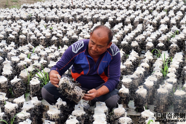 黑木耳种植大户张守礼悉心照看每一个菌包。(中国台湾网 尹赛楠 摄)
