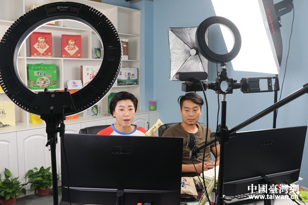 园区内的主播在直播销售农产品。(中国台湾网 李宁 摄)