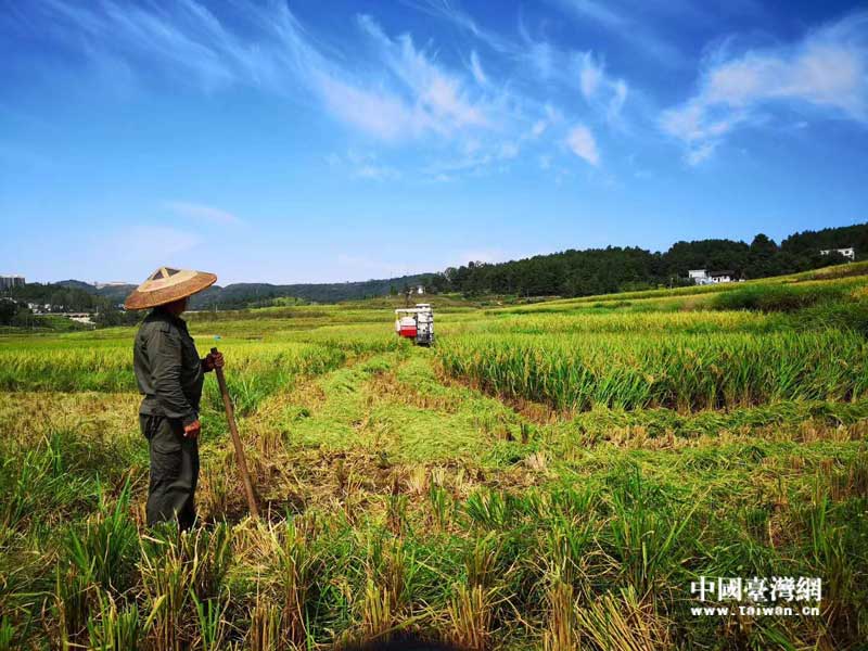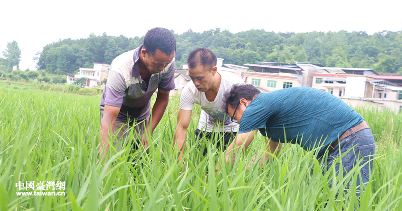 陈绍乐和技术专家讨论稻米种植情况。(中国台湾网 王莉婷 摄)