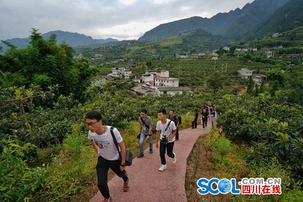 中午时分,采访团记者一下车,就被眼前的果树林所震撼:青翠的果树沿大渡河岸一线撒开,一眼望不到边。“黄果柑挂果要一年,明年3月才会成熟。”挖角乡乡长山丹梅说,这里已发展黄果柑600亩,是石棉县“百里金果长廊”乡村旅游带重要组成部分,也是产村互动共融的新农村示范点。