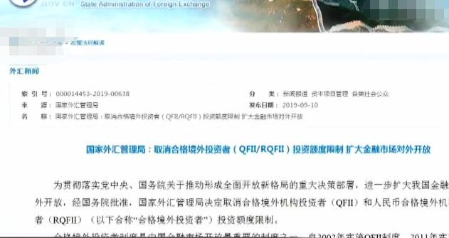 央视网消息:经国务院批准,国家外汇管理局决定取消合格境外机构投资者(QFII)和人民币合格境外机构投资者(RQFII)投资额度的限制,取消单家境外机构投资者额度备案和审批,取消RQFII试点国家和地区限制。今后,具备资格的境外机构投资者只要登记就能够自主汇入资金,开展符合规定的证券投资。专家称,外资入场的便利程度进一步提高,将为中国带来更多境外长期资本。