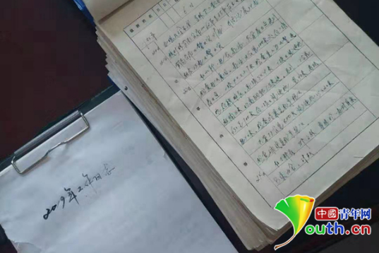 张阔海的一摞日记本。中国青年网记者 杨维琼 摄