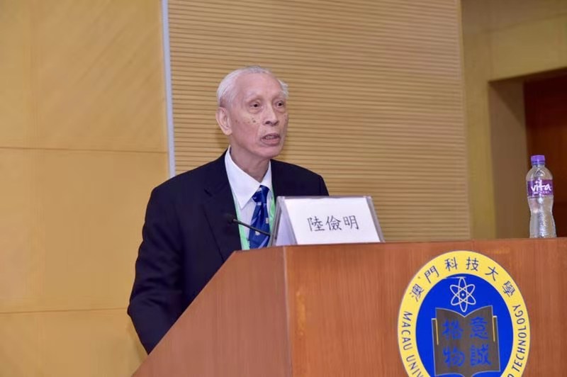北京大学陆俭明教授做学术报告《语法受社会心理的影响和制约》。(中国台湾网发 李康 摄)