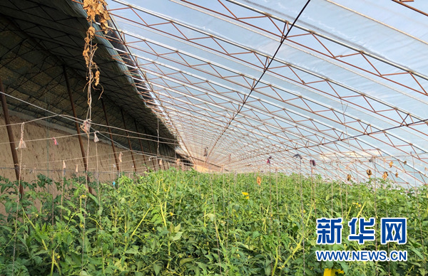 图为十二吐乡达康产业园区大棚内种植的西红柿。新华网汪亚/摄