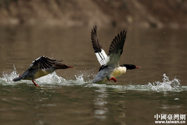 赤红的嘴巴,飘逸的长发,亮翅露出两道杠,号称“会飞的中队长”,它们就是被誉为“国鸭”的明星——中华秋沙鸭。