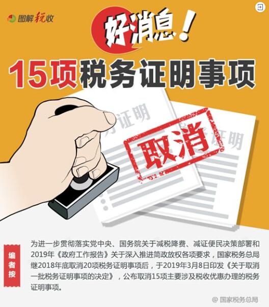 在深入开展“不忘初心、牢记使命”主题教育中,税务部门紧扣“为民服务解难题”的目标,进一步优化税务执法方式、更好落实减税降费政策、着力改善税收营商环境。今年,税务总局分两批共取消40项税务证明事项,包括纳税人享受有关税收优惠需提交税务机关备案的个人身份证明、单位性质证明、不动产权属证明、土地用途证明、资格资质证明等。